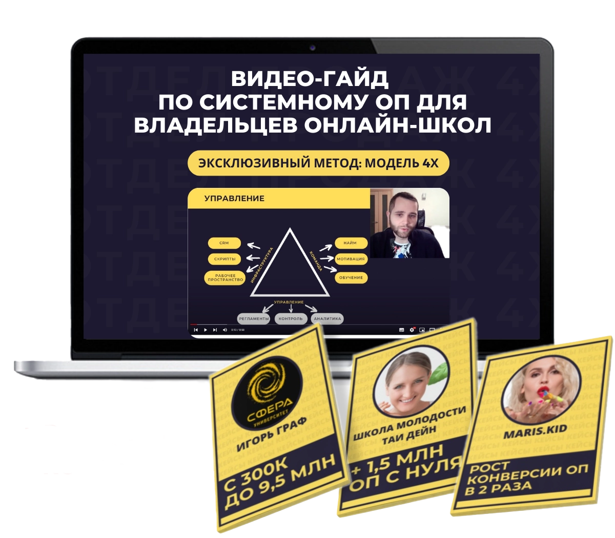 Видео-гайд составлен на основе 30+ кейсов отделов продаж по модели 4Х в онлайн-школах, принесших своим владельцам дополнительно больше 200’000’000 рублей на том же трафике